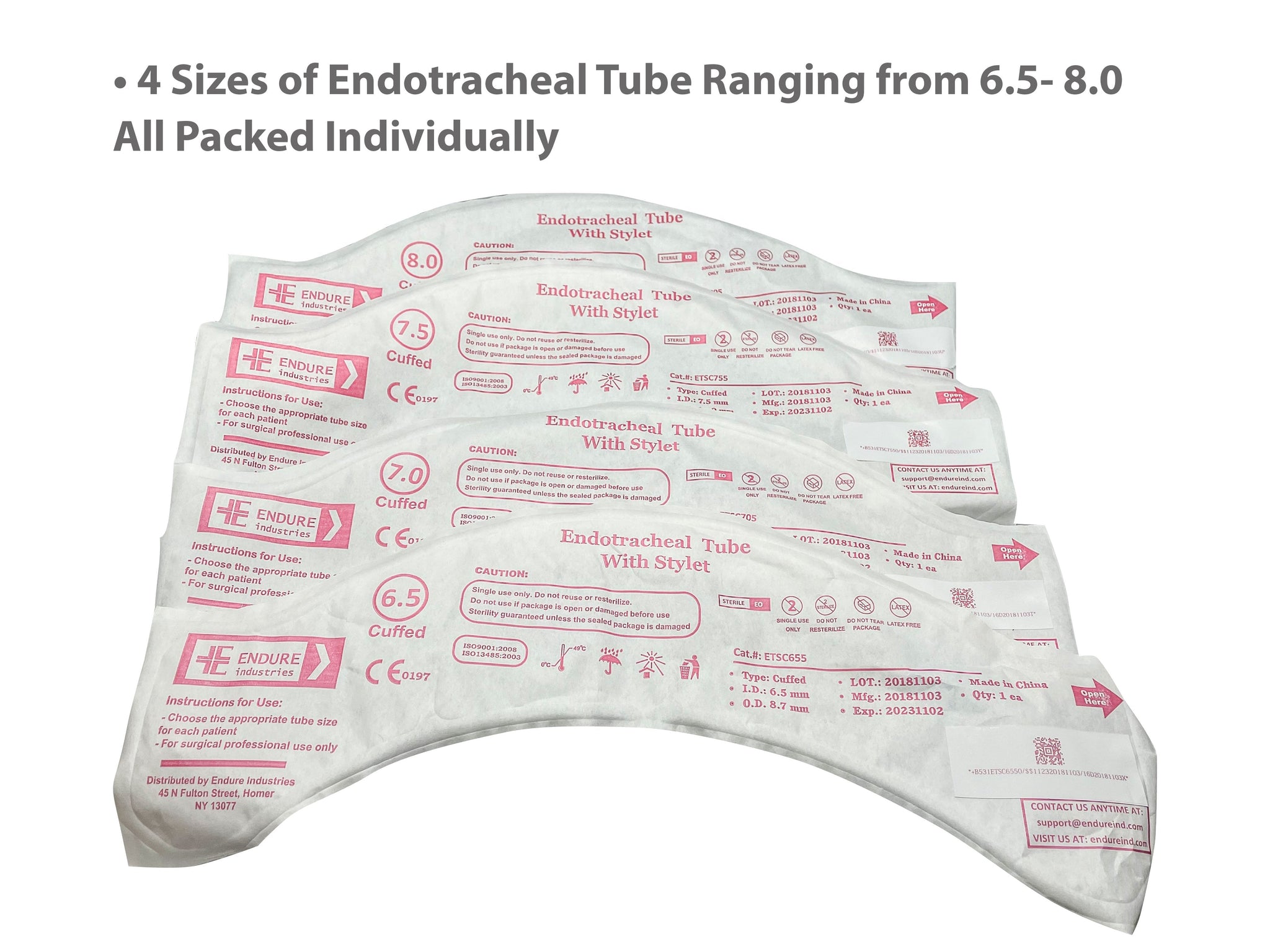 - 4 Endotracheal Tubes with Stylets (Sizes: 6.5 to 8.0)