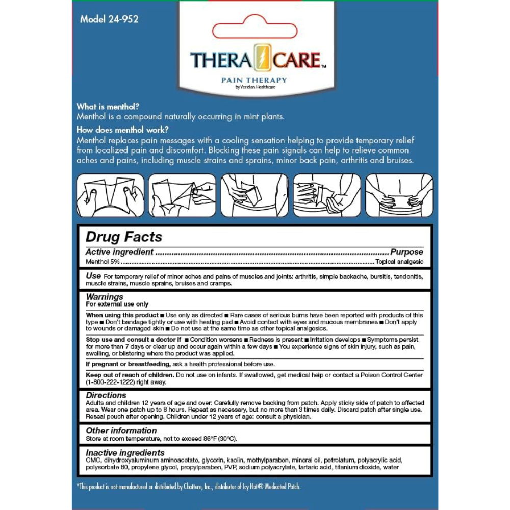 TheraCare Cold & Hot Medicated Patch with 5% Menthol, 5 Count