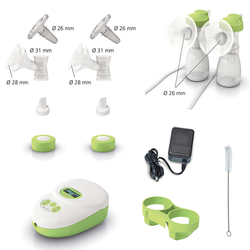 The Calypso Double plus collection features independent vacuum and cycle adjustment for 64 total settings, allowing your breast pump to mimic exactly how your baby breastfeeds at your breast. This breast pumping collection includes three different breast flange sizes to ensure that you can find the right fit to suite your unique nipples. We are proud to say that our Calypso breast pump is one of the only piston-operated breast pumps on the market, allowing you to pump more milk with comfort and ease. The Calypso breast pump is the quietest breast pump on the market so you can pump with ease and discretion. The AA battery operation option, in addition to a regular power adapter, allows you to pump anytime, anywhere. This collection also contains the two soft Optiflow massage inserts (26mm) so you can actively massage your breast and ensure efficient and gentle expression. The Optiflow inserts are especially helpful to perform 'hands on' massaging while pumping to help relieve those pesky clogged ducts. Ardo's 400 hour warranty (or one year whichever is better for you) assures you of a reliable Swiss Made breast pump that you can depend on.