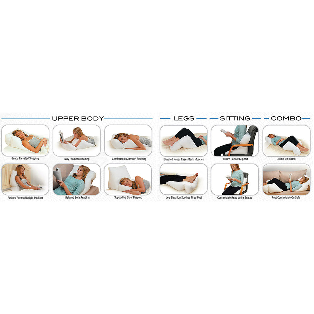 The "Flip" design is perfect for all ages and makes a great gift. It allows for total comfort and support of upper body, legs and head. This soft bed wedge pillow arranges in multiple positions to support neck, shoulders, and lumbar region, as well as knees and legs.