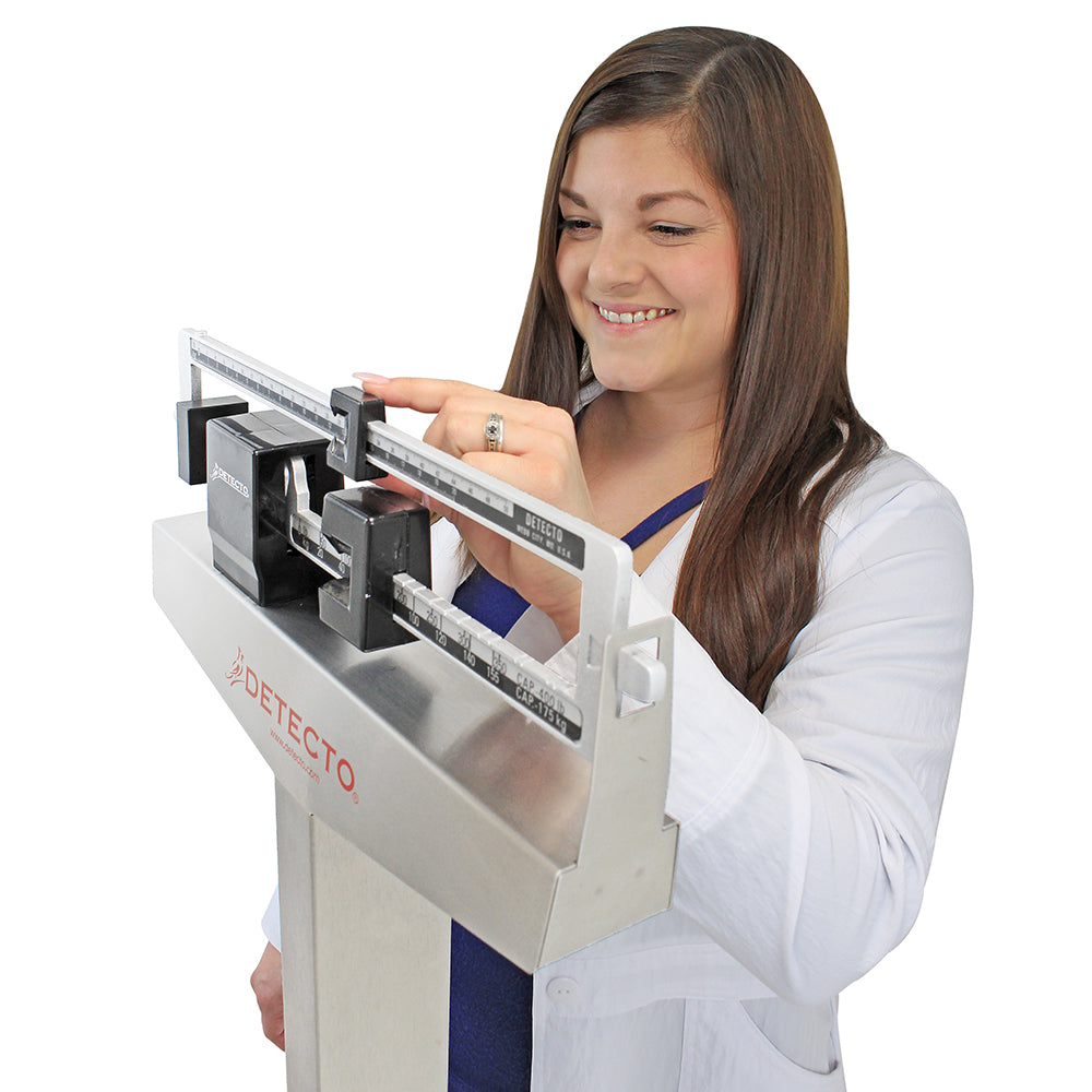 When the patient steps on the scale, simply move the large poise and then the small poise until the weighbeam balances. It's that simple! The anti-tip sturdy stainless steel scale base is built rock solid for patient support and stability while weighing and measuring. Quick and easy calibration is performed via the adjustment screw on the side of the weighbeam. DETECTO's stainless steel eye-level weighbeam scales may be used in gyms, locker rooms, spas, hospitals, clinics, doctor's offices, and even home use.