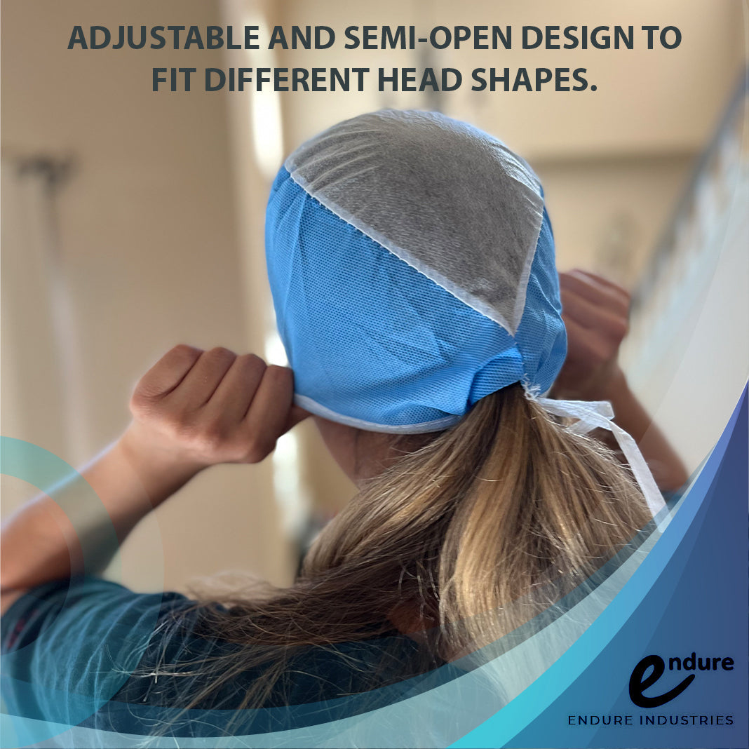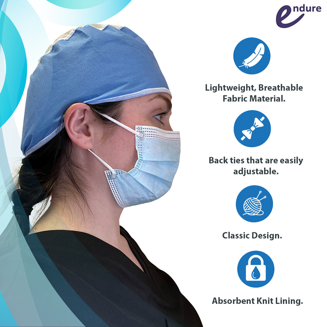 Endure Disposable Surgeon’s Cap is made of thicker SMS material for the side panels and lightweight polypropylene for the transparent crown. This gives the cap a snug fit, at the same time makes it breathable and comfortable to wear. These high quality caps can be worn for hours. One size disposable surgical caps for men and women fit most head shapes. The cap effectively keeps hair out of your eyes and from your work area.