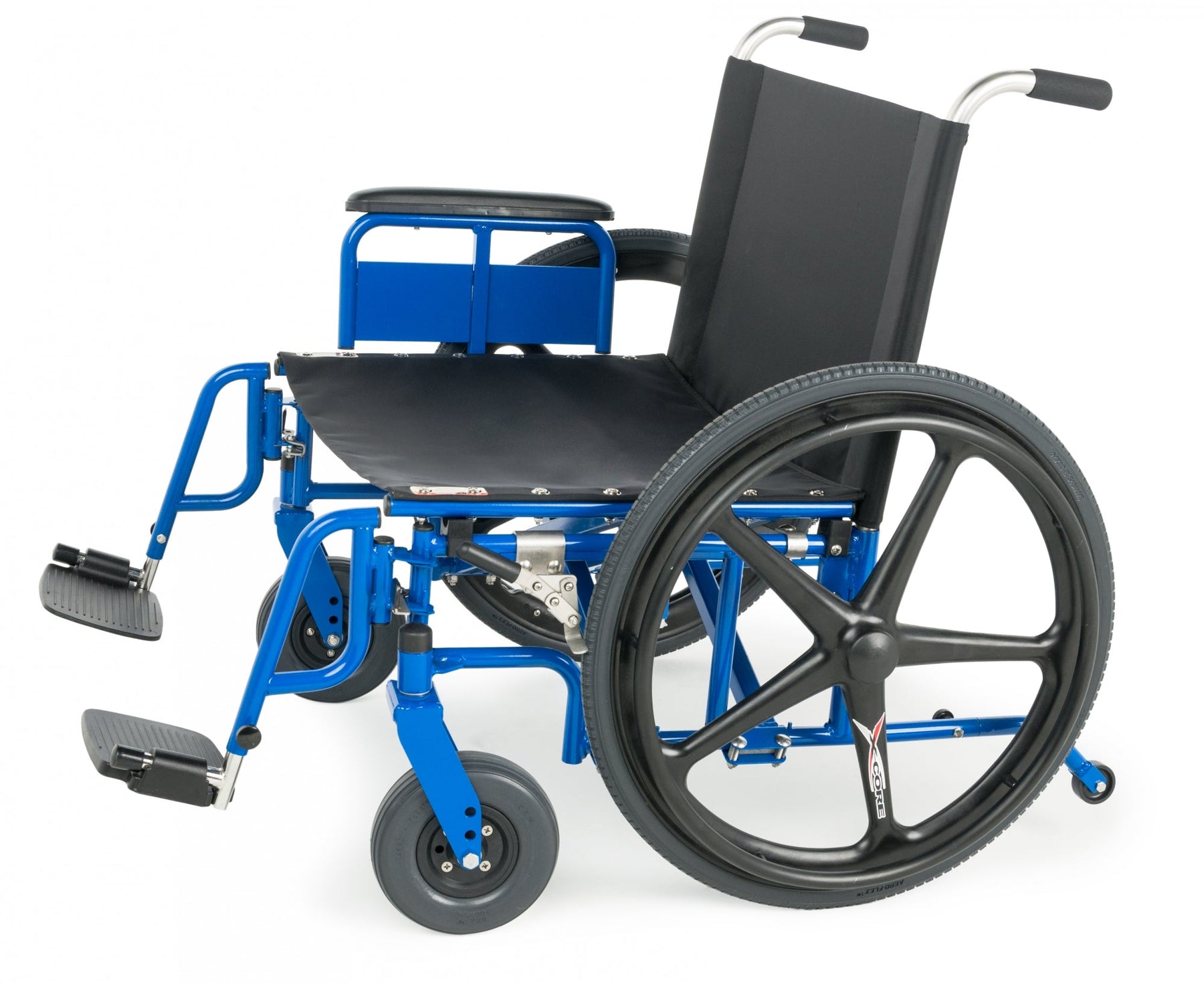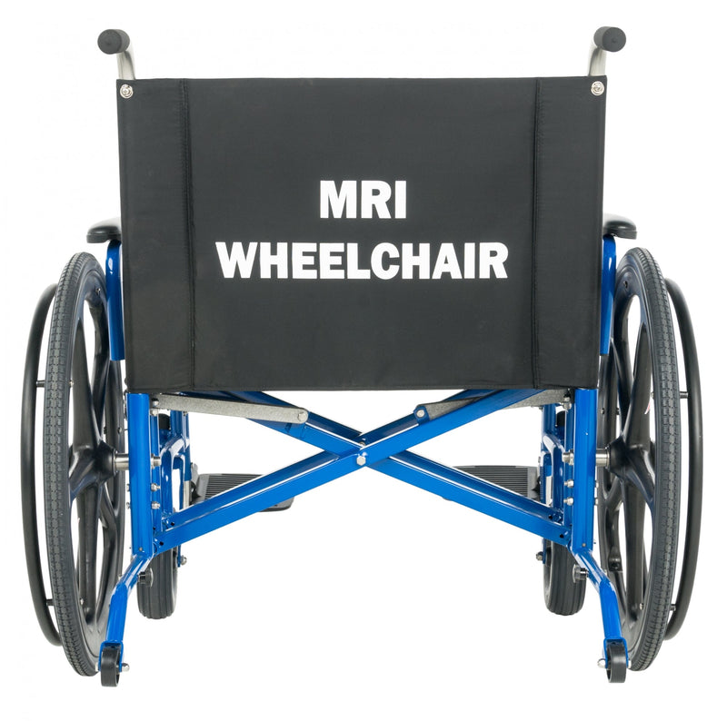 - Distinctive blue frame helps staff immediately identify MR safe wheelchair