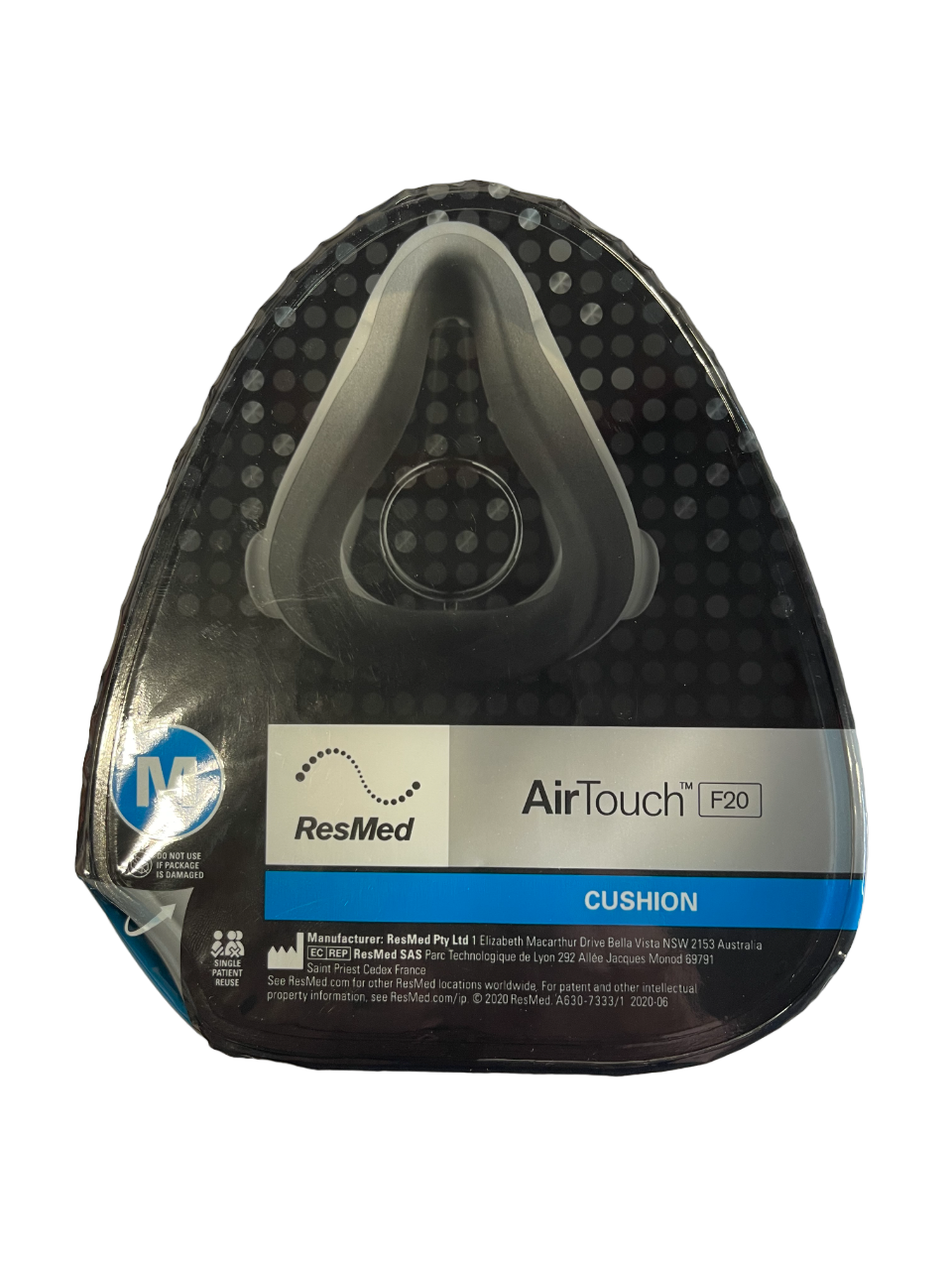 The AirTouch Full Face cushion is interchangeable with the AirFit F20, and the AirFit F20 for Her Full Face CPAP Mask.