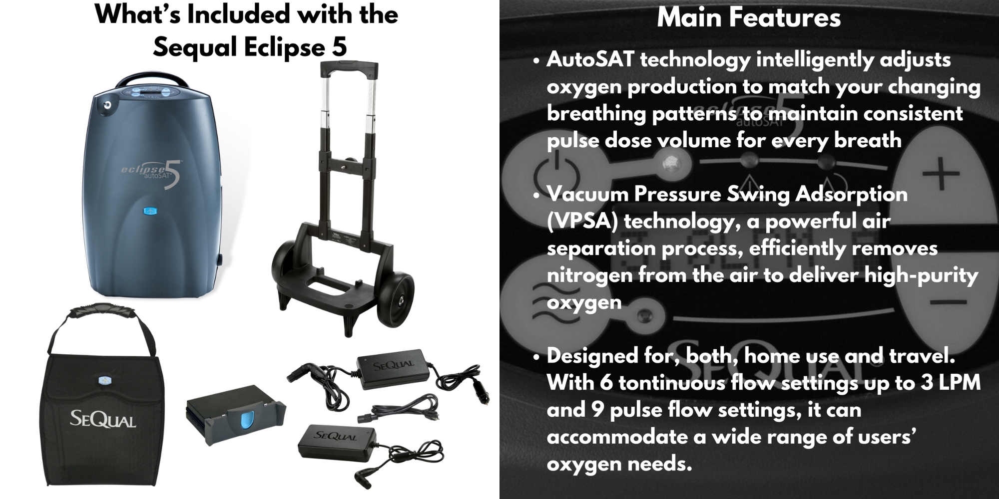 SeQual Eclipse 5 Oxygen Concentrator Features and Benefits: