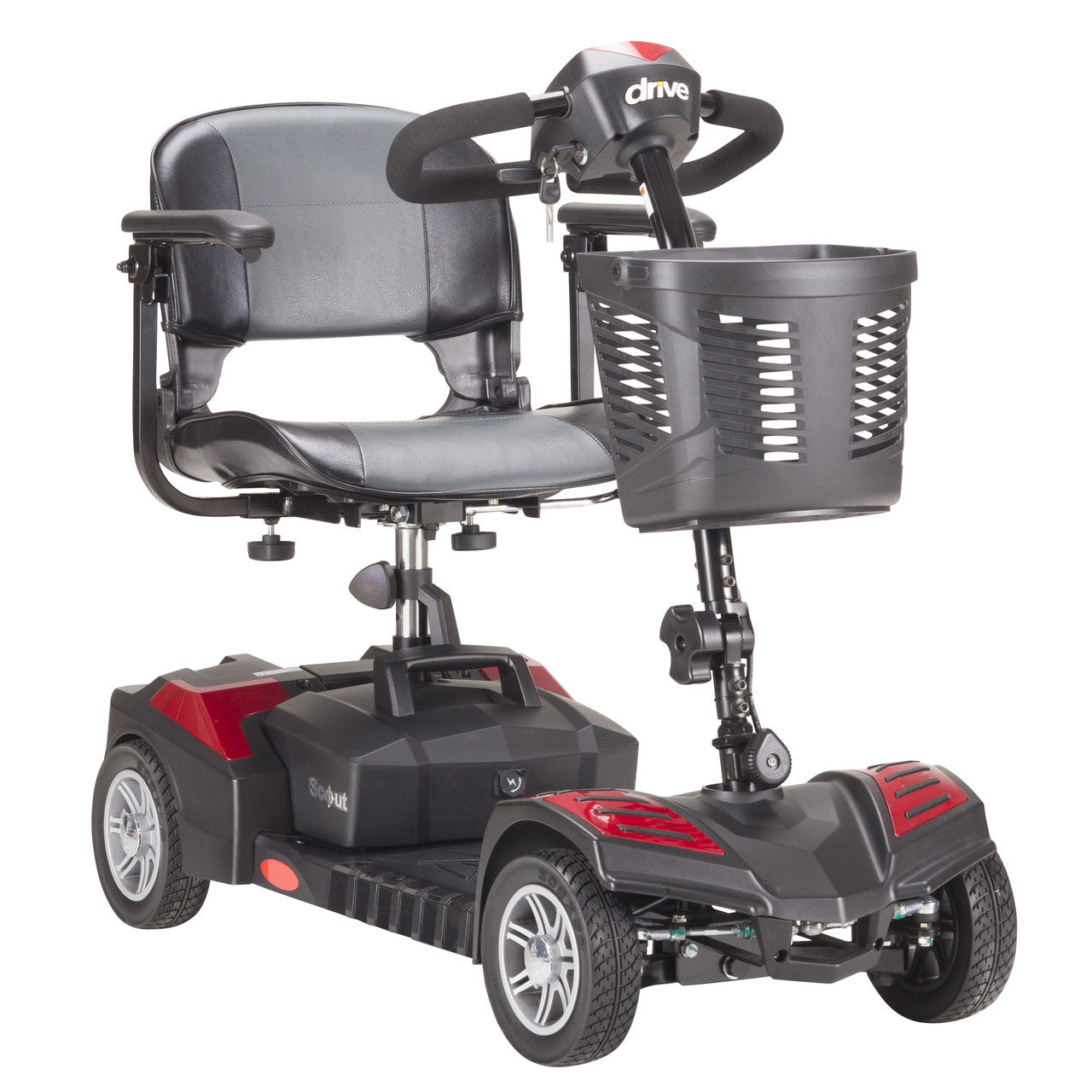 The Spitfire Scout transportable scooter combines easy and convenient mobility with superior value. The Spitfire Scout is compact, lightweight and easy to disassemble-perfect for taking wherever you want to go, either around the neighborhood or far from home. It can be disassembled quickly and easily into five easy-to-handle pieces for loading into a car, truck, or van and taking shopping or on vacation. The four-wheel version of the Spitfire Scout allows for enhanced stability on rougher outdoor terrain. The Scout also offers great features like a quick connect battery pack and a delta-style tiller to make operating the scooter easier for those with limited strength or dexterity. This model comes with color-through panels to hide scuffs and scratches and black wheel rims.