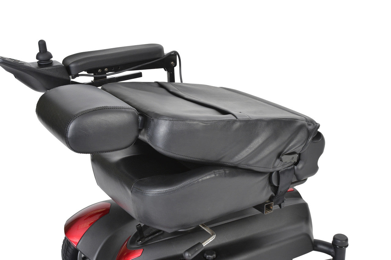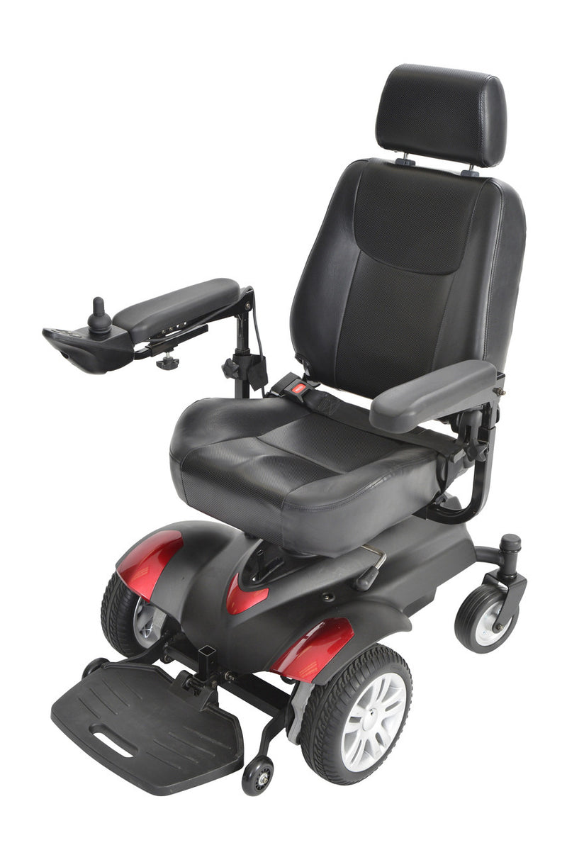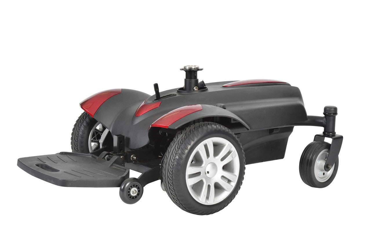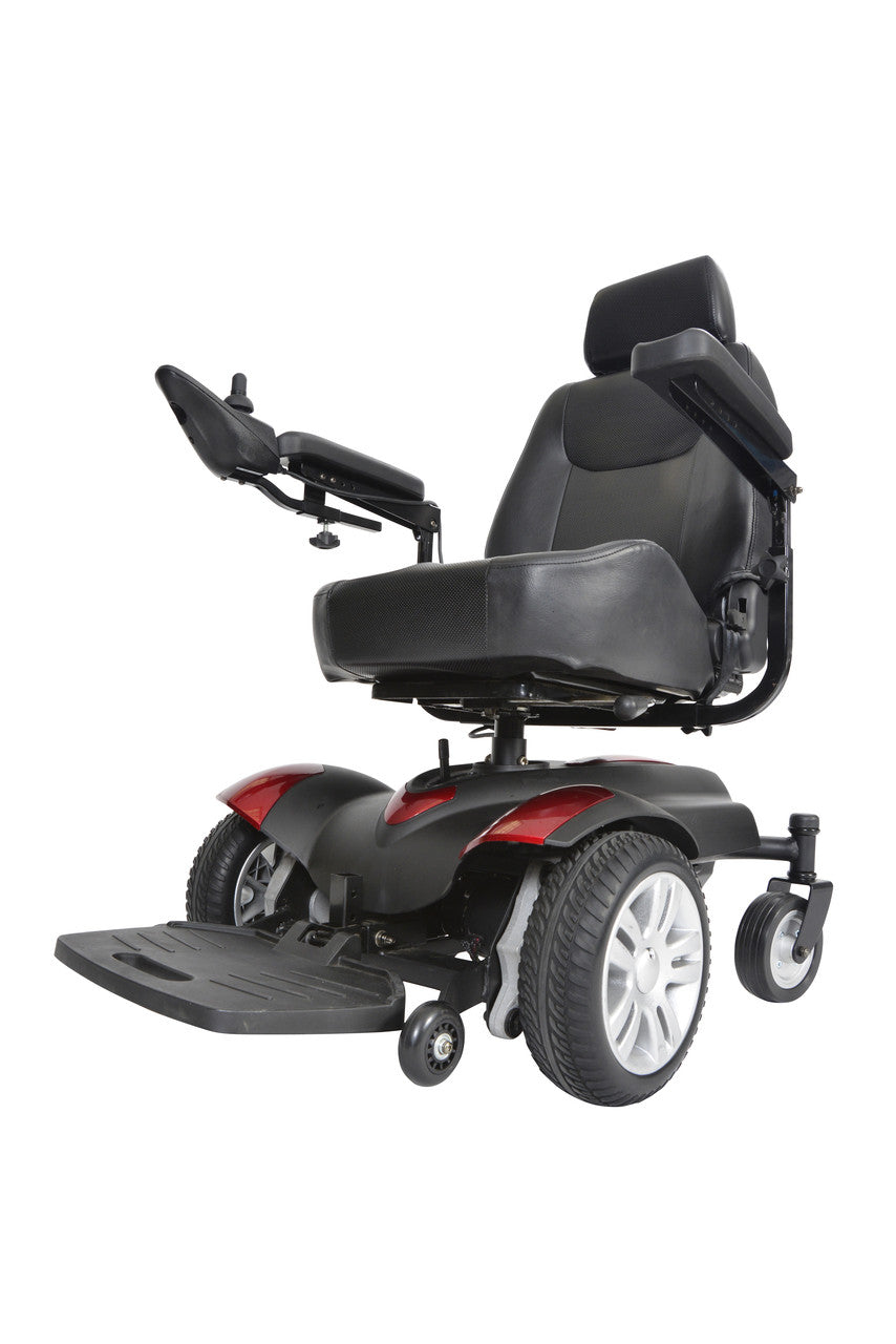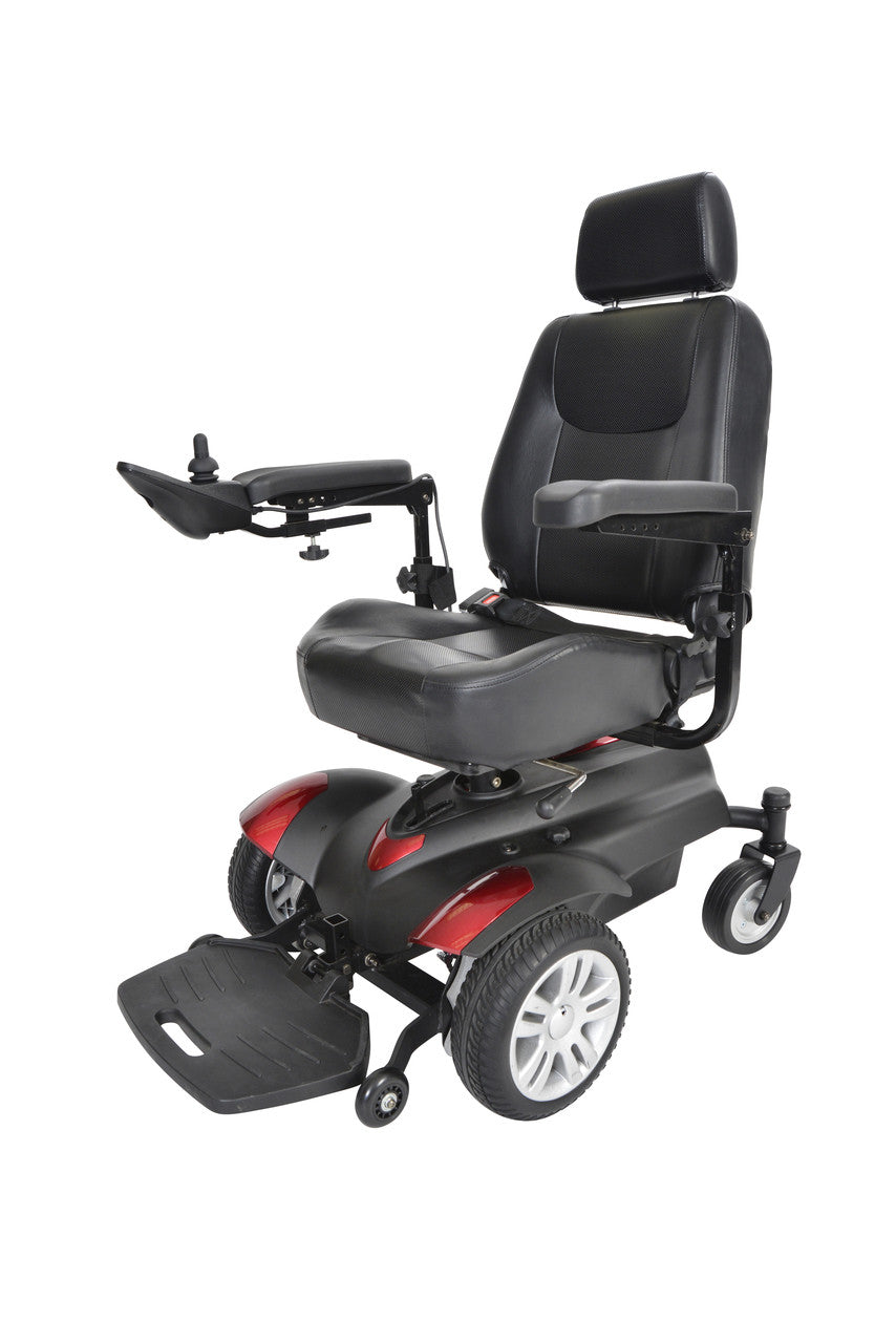 The front wheel drive Titan power wheelchair is a comfortable and stylish option for users seeking a transportable power mobility product that's ideal for indoor and outdoor use. The Titan's front-wheel system positions the drive wheel forward of the user's center of gravity, making the chair extremely stable and giving it great performance over small obstacles. The Titan is also great indoors, navigating tight, enclosed spaces with ease. The Titan is also perfect for users on the go, as the chair can be disassembled, without tools, into components that can be loaded into a car, truck or van for transport without the need for a cumbersome vehicle rack. This chair comes with an 18" Captain's Seat with lower back cutout. You can also customize your Titan with the included two sets of interchangeable color panels.